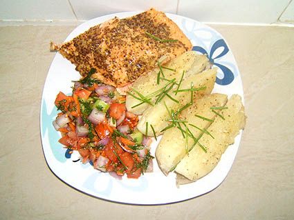 מנה טעימה שאכלתי אצל אימי. ציםוי הדג בחרדל הדיז'ון נותן לדג טעם מיוחד. מהנה...