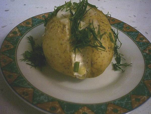 קרא עודתפוח אדמה אפוי וממולא בשמנת, בצל ירוק, ופטריות