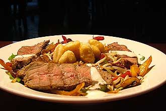 רצועות בקר פטריות ונצרי חזרן (במבוק) בסגנון סצואני
