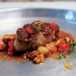 להגשה: מניחים את שוק הטלה במרכז הצלחת ומפזרים סביבה ירקות שורש, בצלים ושומים. מעל השוק מניחים כף של קוביות עגבנייה. לסיום, מזליפים מעט ממיץ העגבנייה והזרעים מעל השוק ומקשטים אותה בטימין.