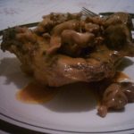 בסיר בינוני מבשלים על אש נמוכה את הקורקבנים כשעתיים. מסננים, מצננים וקוצצים גס. בסיר רחב מחממים מעט שמן. סוגרים את נתחי הבקר משני הכיוונים, מוציאים ומניחים בצד. מוסיפים לסיר הרחב את הבצל, הצ'ילי, השום והקורקבנים. מטגנים קלות ומחזירים את הבקר פנימה, יחד עם הנוזלים שהגיר בזמן ששהה בחוץ. מוסיפים את היין ומגרדים את תחתית הסיר עם כף עץ. מוסיפים את המים ורסק העגבניות, מביאים לרתיחה ומנמיכים את האש. מפזרים את העירית הקצוצה מעל ומכסים את הסיר לבישול של כשעה וחצי.