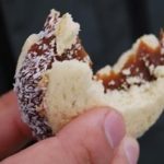 8.לוקחים מעט ריבת חלב ומורחים על השולחן, מגלגלים את דפנות העוגייה לתוך ריבת החלב ולאחר מכן לקוקוס.