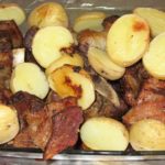 מערבבים את הבשר עם השמן והמלח. מניחים את הבשר על רשת מעל תבנית בתנור שחומם מראש ל-225 מעלות למשך 25 דקות. מנמיכים את חום התנור ל-180 מעלות ל-20 דקות נוספות. מוציאים את הבשר מהתנור ומעבירים אותו לתבנית אחרת יחד עם תפוחי האדמה. מפזרים מעל את הרוזמרים וכמות נדיבה של פלפל שחור גרוס. מזליפים מעט מהנוזלים והשומן שהצטברו בתחתית התבנית הקודמת ומחזירים לתנור (180 מעלות) לעוד כ-35 דקות.