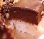 1.בסיר מרתיחים את השמנת. מוסיפים את השוקולד והקפה ומערבבים עד שהשוקולד נמס לחלוטין והתערובת אחידה וסמיכה. מסירים מהאש. יוצקים על הקוקוס הקפוא, מנערים להוצאת בועות אוויר ומחזירים למקפיא למספר שעות. חותכים לקוביות בגודל 1.5X1.5 ס"מ בעודו קפוא, מסדרים בצלחות הגשה, ושומרים במקרר כשעה לפני ההגשה