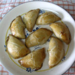 שמים בכל עיגול מהמילוי ומקפלים לחצי. מורחים מהחלמון ושמים בתנור שחומם מראש ל 180 מעלות ואופים כ 25-35 דקות