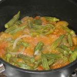 מחממים את השמן בסיר קטן. מוסיפים את הבצל ומטגנים עד לשקיפות. מוסיפים את הבמיה ומטגנים יחד עוד כשתי דקות. מוסיפים את השום והצ'ילי ומערבבים יחד כדקה. מוסיפים את העגבניות, המים, המלח והפלפל ומבשלים יחד עם מכסה סגור כרבע שעה.