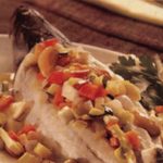 להגשה: מניחים את הדג על הצלחת מסדרים מעל את "גפרורי" הירקות ומגישים.