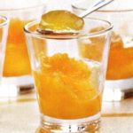 מוסיפים את הג'לטין המומס למיץ התפוזים והיין ומערבבים היטב. מתבלים באגוז מוסקט.