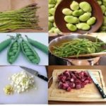 חולטים את הירקות הירוקים, מלבד אפונה השלג, במים רותחים במשך 3-4 דקות. מוסיפים את האפונה ואחרי שתי דקות מסננים.