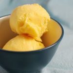 2. בבלנדר קוצצים את המנגו לרמת פירה מוסיפים מיץ לימון ולאחר מכן להוסיף סוכר.