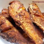 חתיכות דג ומטגנים את הדגים משני הצדדים עד להזהבה.