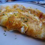 4.מקפלים את החביתה מעל במחצית כאשר החביתה הזהיבה. ומבשלים עוד דקה.