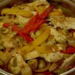 לחתוך את חזה העוף לרצועות בגודל הרצוי לתבל במלח ופלפל שחור גרוס ולסדר