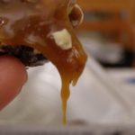 שוברים/ חותכים גושים מתערובת הקרמל ? אגוזים וטובלים בשוקולד החם ומצפים מכל העברים. להניח על נייר אפיה להתייצבות.