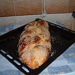 מכל 3 גלילים יוצרים צמה. מברישים בשכבה דקה של ביצה טרופה, ומפזרים מעט