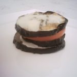 מחממים שמן במחבת. טובלים את החצילים בחלבונים ומטגנים עד להזהבה יפה מכל צד. מספיגים שמן עודף על נייר סופג. מניחים בצלחת הגשה חסינת חום פרוסת חציל, עליו מניחים מעט גבינת שמנת שום שמיר, מעל פרוסת עגבנייה, חציל, גבינת שמנת שום שמיר, עגבנייה, פרוסת חציל. מעל הכל מפוררים מעט גבינת רוקפור ומכניסים לתנור שחומם מראש ל-200 מעלות עד להשחמה קלה של הגבינה מלמעלה.