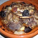 בטאג'ין מפזרים את רוב הפירות היבשים, מניחים במרכז את השום שטוגן קודם חצוי ומחצית מהבצל המטוגן בסיר.
