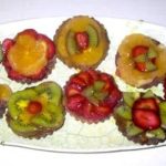 2. מוציאים את הטארטים מן התבניות ומניחים בכל אחד פרוסות תות שדה, וירקות אחרים, בצורה הכי אסתטית שאפשר.