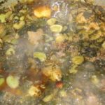 1.מוציאים את הפולים מהתרמילים וקולפים אותם. חותכים את עלי הסלק לרצועות. קולפים את שיני השום וכותשים 4 מהן.