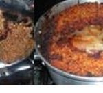 מוציאים מהתנור ומסירים את המכסה. מניחים על פתח הסיר צלחת גדולה. הופכים את הסיר בזהירות על הצלחת. מגישים ואוכלים בשמחה.