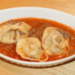 שופכים את מי הבישול ומעבירים את הטורטליני אל המחבת עם שארית הבשר והרוטב שבו הוא בושל.