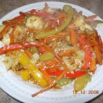 לטגן במעט שמן כרובית וגזר כ-5 דקות, להוסיף פלפלים, וכרוב, לערבב ולטגן עוד כ-5 דקות.