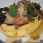 בצלחת עמוקה ממלאים 2 כפות פולנטה מעל מסדרים כמות של כבד ומעל את הבצלים המטוגנים