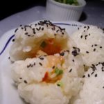 6.לוקחים 1/4 כוס של אורז יוצרים כדור של אורז בעזרת ידיים רטובות. יוצרים גומה בכדור