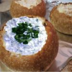 ככר לחם עגולה כהה במילוי צאזיקי או/ מרק חם או קר אחר
