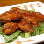 מטגנים את שאר הכנפיים ומניחים במרכז הצלחת מעל העלים, שופכים את הרוטב מעל.