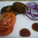 מגישים חם, בליווי מעט ירקות, רוטב ברביקיו וקטשופ.