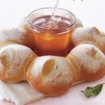 * ממיסים את השמרים עם המים בקערת מערבל. מוסיפים את הקמח, משפר אפייה, הביצים, השמן, הדבש והמלח. מערבבים בעזרת וו הלישה במהירות נמוכה כ-4 דקות ולאחר מכן במהירות בינונית 6 דקות נוספות לקבלת בצק אחיד (הבצק צריך להיות קשה). מכסים את הבצק ומניחים בצד למנוחה כ-10-15 דקות בטמפרטורת החדר.