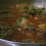 בסיר רחב מחממים מעט שמן. מוסיפים את הבצל הפרוס ומטגנים עד להזהבה. מוסיפים את הפטריות ומטגנים ביחד כדקה. מוסיפים את השום הקצוץ, הזנגביל והצ'ילי הקצוץ. מערבבים היטב ביחד כחצי דקה ומוסיפים את העגבניות המרוסקות. מערבבים היטב ומוסיפים כוס וחצי מים. שוב מערבבים ומוסיפים את רסק העגבניות והסוכר ושוב מערבבים היטב. מכניסים פנימה את פרוסות הלשון, מפזרים מעל מעט נענע מיובשת, מעט טימין מיובש ואת הפטרוזיליה, מביאים לרתיחה, מנמיכים את האש, סוגרים את הסיר ומבשלים כעשר דקות על אש קטנה. מתקנים תיבול עם מלח ופלפל.