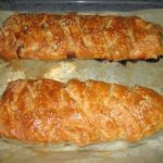 2. חורצים פסים אלכסוניים ממרכז המלית את קצות הבצק בשני הצדדים וקולעים את הרצועות כצמה.