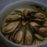 בסיר ממיסים 20 גרם מהחמאה ומוסיפים את השאלוט. לאחר שהשאלוט מתרכך מעט מוסיפים את היין הלבן ועלי הדפנה ומביאים לרתיחה. מוסיפים את הצדפות, מכסים ומבשלים כשלוש דקות או עד שכולם נפתחים. מסננים את הצדפות ושומרים את הנוזלים.