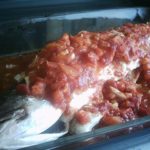 מוסר ים אפוי ברוטב עגבניות פיקנטי
