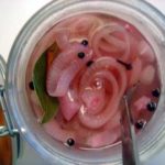 4. בצנצנת שניתנת לאטימה מסדרים את כל טבעות הבצל ושופכים מעל את חומר המישרה לרבות תכולתו.