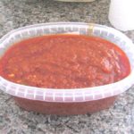 מחממים בסיר עמוק את השמן ומטגנים קלות את קוביות הפלפלים על להתרככות קלה, מוסיפים את שיני השום הקצוצות (לא הכתושות) וממשיכים לטגן בערך עוד 1 דקה עד שמריחים את הארומה של השום. מוסיפים את קופסת העגבניות המרוסקות, מערבבים, מורידים את הלהבה לנמוכה ביותר וממשיכים לבשל/לטגן את כל התערובת כ- 30-35 דקות לפחות תוך כדי ערבוב מדי פעם (רצוי לסגור חלקית את הסיר על מנת שהתערובת לא תתיז ותלכלך את כל הכיריים). לאחר מכן, מוסיפים את כל התבלינים, מערבבים, מוסיפים את השום הכתוש וממשיכים לבשל עוד כ- 10 דקות.