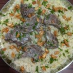 משטחים עליה את האורז ועליו את הבשר הטחון.