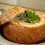 5.בקערית לחם/או בכל קערת הגשה מוסיפים כף שמנת, זרזיף שמן זית ובצל ירוק לקישוט