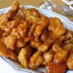4. בווק או מחבת עמוקה מחממיםם את השמן ומזהיבים את קוביות העוף בשתי סבבים. להשחים מכל הצדדים ולהוציא.