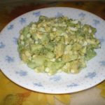 חוצים את האבוקדו ומקלפים אותו. מוציאים את הגלעין וחותכים לקוביות (כ-1X1 ס"מ).