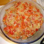 עגבניות- להשרות במים חמים לקלף את הקליפה. לחצות את העגבניות ולהוציא את הגרעינים, לחתוך לקוביות קטנות