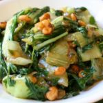 3.במחבת עם 2 כפיות שמן חם מאוד מוסיפים את הבצל ג'ינג'ר ומקפיצים דקה. מוסיפים את גבעולי הבוק צוי עד אשר הם קמלים מעט ומבריקים.
