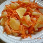 להוסיף את האננס ללא הנוזלים, להוסיף תפוז אחד קלוף ופרוס לפרוסות דקות