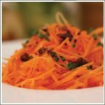 מערבבים גזר ועירית בקערת הגשה שקופה.