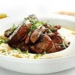 מורחים על דפנות צלחת עמוקה חומוס וכף באמצעיתה מניחים כמות נאותה של הכבד עם הבצל המטוגן ומקשטים במעט שמן מטיגון הכבד וכף פטרוזיליה קצוצה.