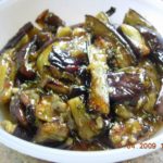 1 חציל בינוני חתוך לרצועות עם הקליפה