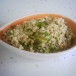 מחממים בסיר קטן את שמן הזית. מוסיפים את הקינואה ומערבבים כדקה ביחד. מוסיפים כפית מלח ואת המים. מכסים ומביאים לרתיחה. מנמיכים את האש ומבשלים עד עשרים דקות. מסירים מהאש ומצננים לטמפרטורת החדר. מעבירים את הקינואה לקערה ומערבבים עם יתר החומרים. שומרים במקרר עד להגשה.