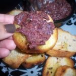 1.מכניסים את הזיתים (1 כוס) ללא גלעינים, צלפים, שום, גרידת לימון, מיץ לימון, טימין, אם חצי כוס אנשובי ופלפל חריף לבלנדר או במעבד מזון וטוחנים . למרקם מעובה או חלק.